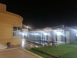 الأول من حوش كبير مع جلسة خارجية كبيرة ومسبح كبير